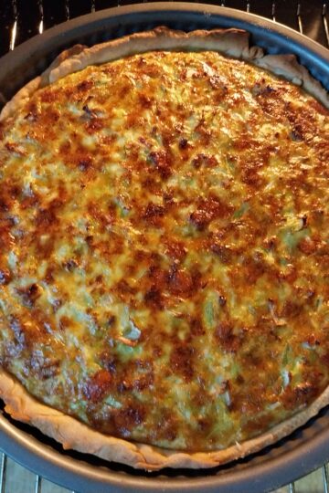 8 Stücke, für Tarteform ca 26 cm Zutaten: Butter in Stücken (2 cm), und etwas mehr zum Einfetten 80 gMehl und etwas mehr zum Bearbeiten 180 gSalz 1 TLWasser 60 gGruyère Käse in Stücken (2 cm) 100 gPorree (Lauch) in Ringen (2 cm) 300 gSahne (Schlagobers) 200 gMilch 150 gEier 3Muskat 2 PrisenPfeffer 1 Prise […]