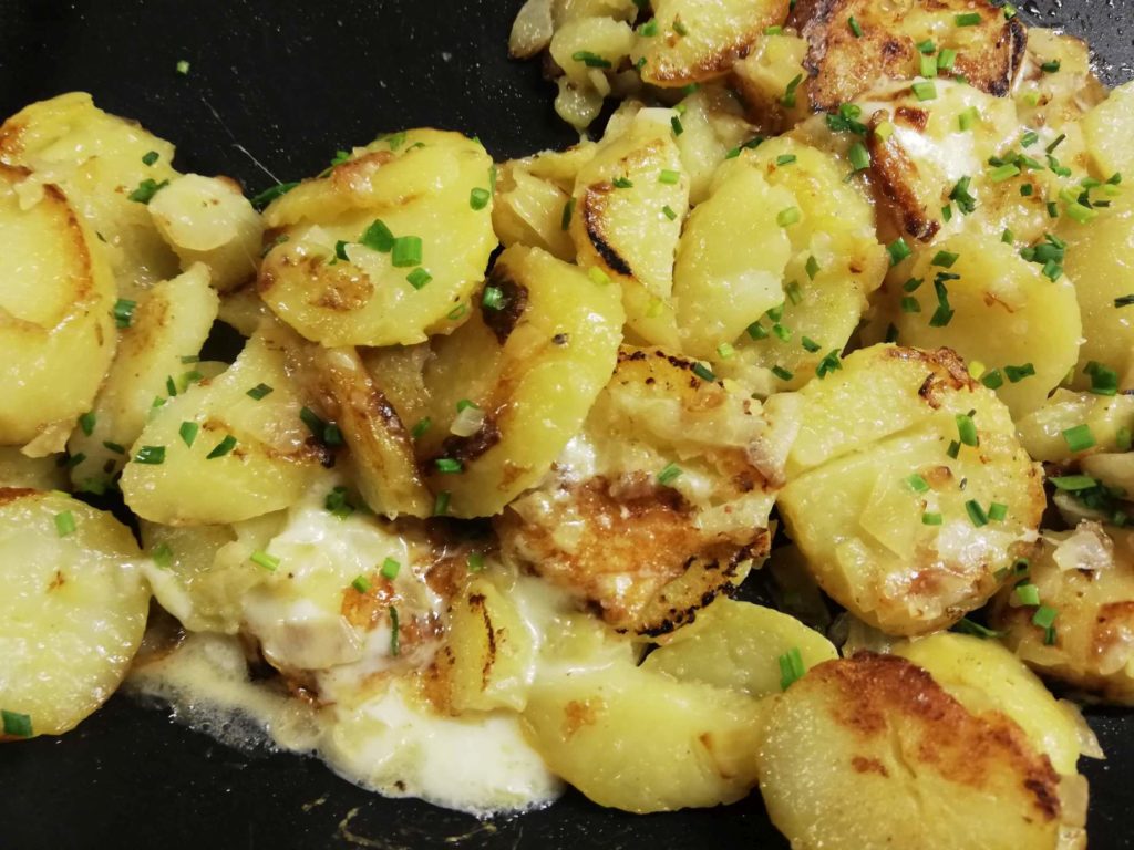 Wieder ein einfaches und leckeres Gericht – Zubereitungszeit etwa 1h Zutaten: ca 750 g Kartoffeln (speckig bzw festkochend) ca 125