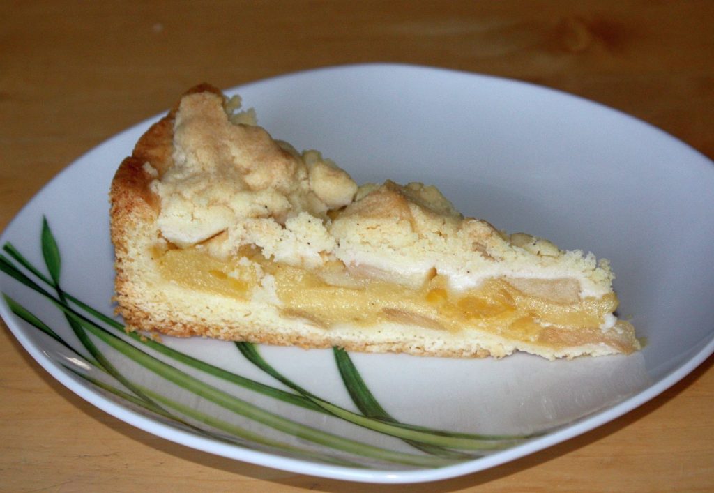 Köstlicher Apfel-Streusel-Kuchen mit Apfelmus und Vanillepudding